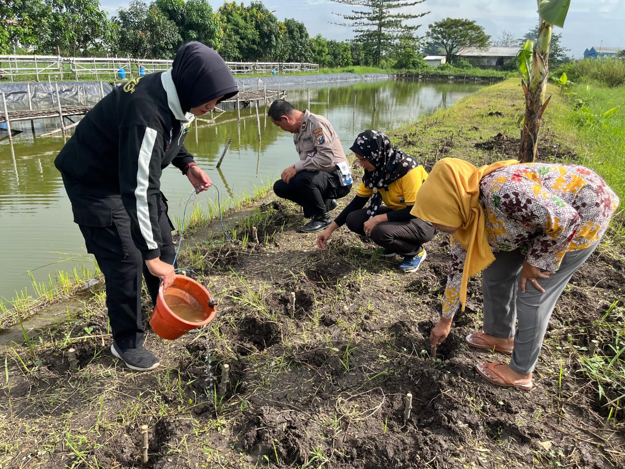 Polresta Sidoarjo Dukung Ketahanan Pangan Nasional Lewat Perawatan Bibit Singkong di Desa Ponokawan