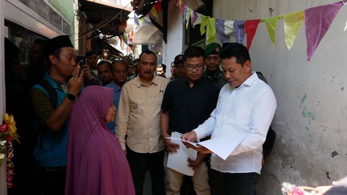 SIDOARJO, kasatmata.id – Wujud gotong royong program RTLH kabupaten Sidoarjo, Bupati Sidoarjo, Subandi, menyerahkan secara langsung kunci hasil renovasi Rumah Tidak Layak Huni (RTLH) milik Ibu Munjiati dan Bapak Madekan di Kelurahan Sidokumpul, Kecamatan Sidoarjo pada Kamis (4/9/2025).