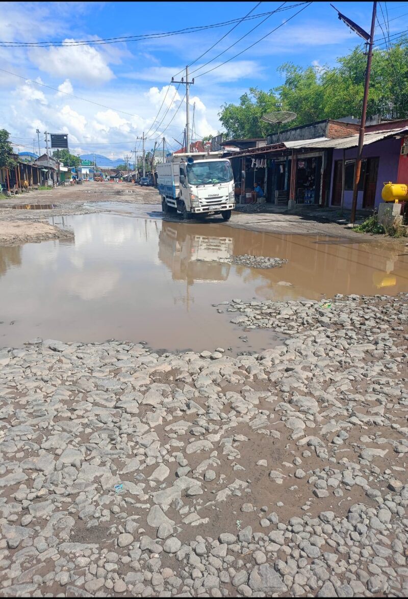 Tampak dari pantauan awak media, jalan raya sangat rusak, banyak lubang-lubang menganga dengan kondisi yang memprihatinkan, Minggu (02/11/2025).