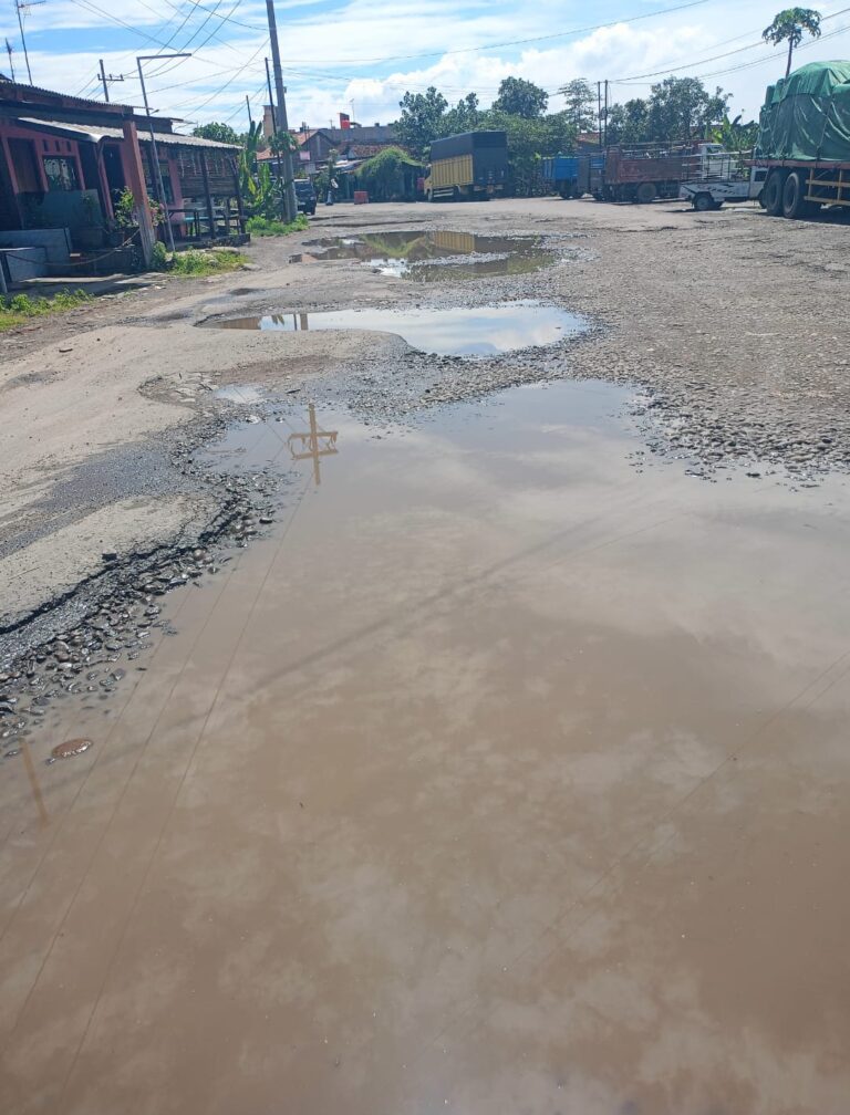 Truk-truk besar yang setiap hari melintas harus berhati-hati melewati genangan air dan lubang menganga. Saat musim hujan, jalan berubah seperti kubangan lumpur, sementara di musim kemarau, debu pekat menyelimuti pemukiman warga dan mengganggu kesehatan.