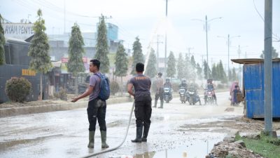 “Disini, kami membantu kompi senapan untuk menyedot air yang tergenang di markas kompi senapan” Jelas Ipda Roy.