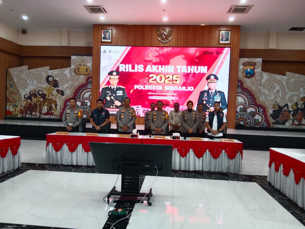 kasatmata.id, Sidoarjo | Kapolresta Sidoarjo menyampaikan capaian kinerja kamtibmas, dalam kurun waktu satu tahun. Hal tersebut disampaikan dalam rilis akhir tahun 2025, di Gedung Serba Guna, Mapolresta Sidoarjo, Selasa (30/12/2025) sore.