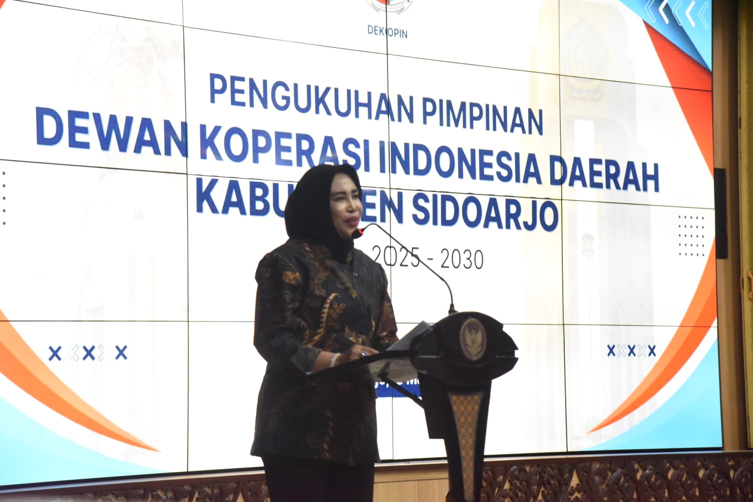 kasatmata.id, Sidoarjo | Pengurus Dewan Koperasi Indonesia Daerah/Dekopinda Kabupaten Sidoarjo periode 2025–2030 dikukuhkan. Pengukuhan dilakukan oleh Ketua Dekopinwil Prov. Jatim, H. Slamet Sutanto. Wakil Bupati Sidoarjo Hj. Mimik Idayana hadir dalam pengukuhan yang digelar pendopo Delta Wibawa, Selasa sore, (3/3).