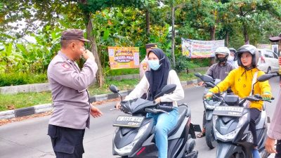 SIDOARJO – Polisi mengedukasi pengendara yang tidak memakai helm SNI saat melintas di Jalan Raya Pulungan, Sedati,…