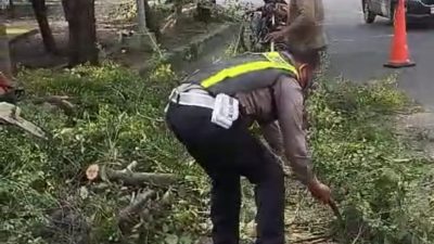Sinergi Anggota Polsek Buduran dan DLHK Sidoarjo Sigap Tangani Pohon Tumbang di Depan Museum Mpu Tantular kasatmata.id,…