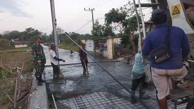 Babinsa Koramil Sreseh Gotong Royong Bersama Warga Bangun Jalan Rabat Beton